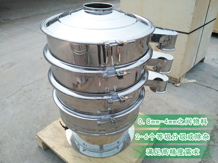 不銹鋼振動篩可篩分0.8mm-4mm之間規(guī)格的杏仁,可安裝1-5層篩網(wǎng),同時能進行2~6個等級的分級或除雜,一次性可以篩分出六種不同規(guī)格的杏仁,單層可以簡單的分級除雜,多層則可以完成多種分級除雜等篩分效果。