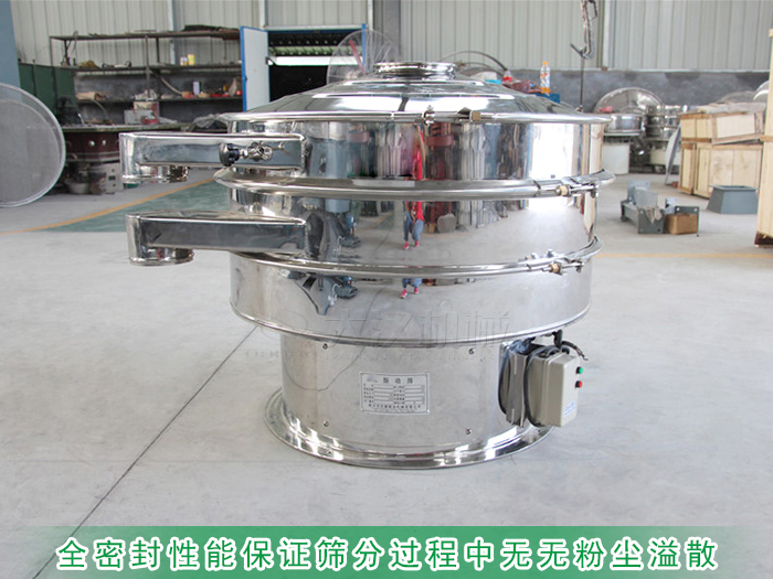 大漢機(jī)械生產(chǎn)的全不銹鋼振動(dòng)篩具備嚴(yán)格的全密封性能保證篩分過程中無無粉塵溢散,與物料接觸部分不會(huì)有雜質(zhì)污染,篩箱內(nèi)部經(jīng)過嚴(yán)格的拋光及打磨,焊接處沒有毛刺現(xiàn)象,篩框與篩網(wǎng)之間的密封件配備硅膠材質(zhì)符合食品衛(wèi)生標(biāo)準(zhǔn)。保證所篩分的物料在篩分過程中的衛(wèi)生無污染。