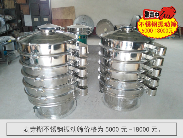 大漢機(jī)械所生產(chǎn)的麥芽糊不銹鋼振動(dòng)篩價(jià)格為5000元-18000元。