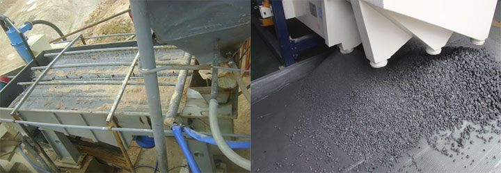 脫水與脫泥:石英砂振動(dòng)篩采用高頻篩板時(shí)還能脫除石英砂表面的水分與黏土細(xì)泥,使黏土類細(xì)泥變得松散并隨水流穿過篩網(wǎng)排出,這為后續(xù)的干燥環(huán)節(jié)節(jié)約了能耗。