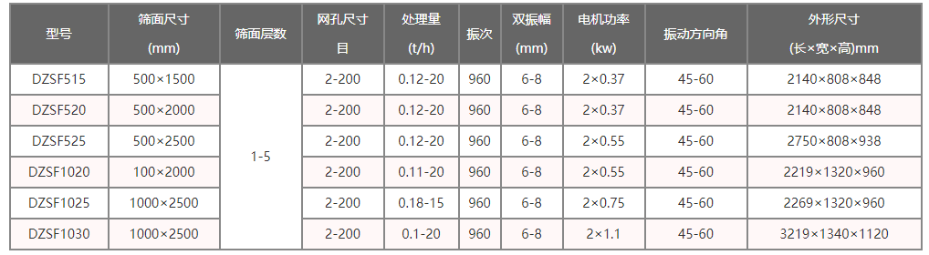 直線振動篩技術(shù)參數(shù)