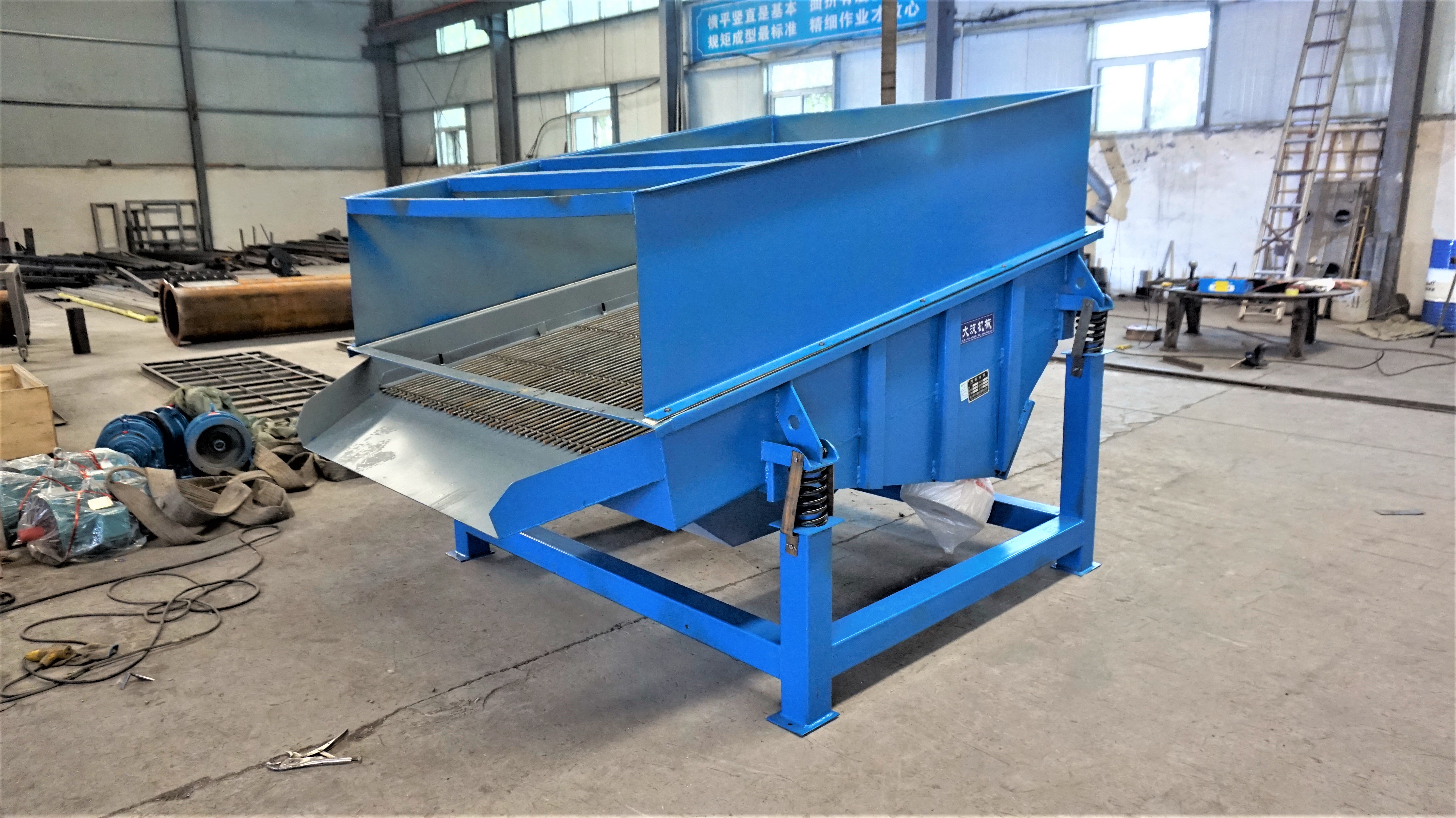 ZSG系列礦用重型篩分機(jī)有篩箱、振動(dòng)電機(jī)、減振系統(tǒng)及底架等組成。篩箱由篩框、篩板、襯板等組成。篩機(jī)側(cè)板采用優(yōu)質(zhì)鋼板制作而成,側(cè)板與橫梁、激振器底座采用高強(qiáng)度螺栓或環(huán)槽鉚釘連接,結(jié)構(gòu)合理,堅(jiān)固耐用。